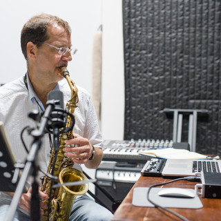 With the help of Stephen Vitiello, I found a new microphone and recording gear to experiment with acoustics in the space. Again, working at daybreak, I recorded solo saxophone performances of each vignette. The room let clouds of notes ring simultaneously, as if the studio was a giant piano, sustaining the notes and forming chords. During the residency I also developed a new generation of saxophone processing ideas that resulted in the additional layers of electronics heard here. The result is a ‘choir’ of saxophones, some processed electronically, some not, and some playing breathing sounds to add a sense of perspective.